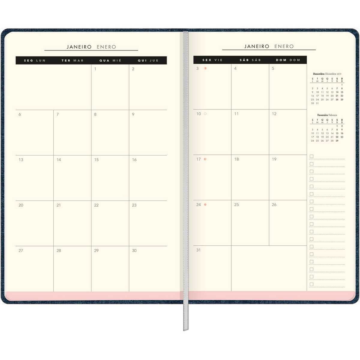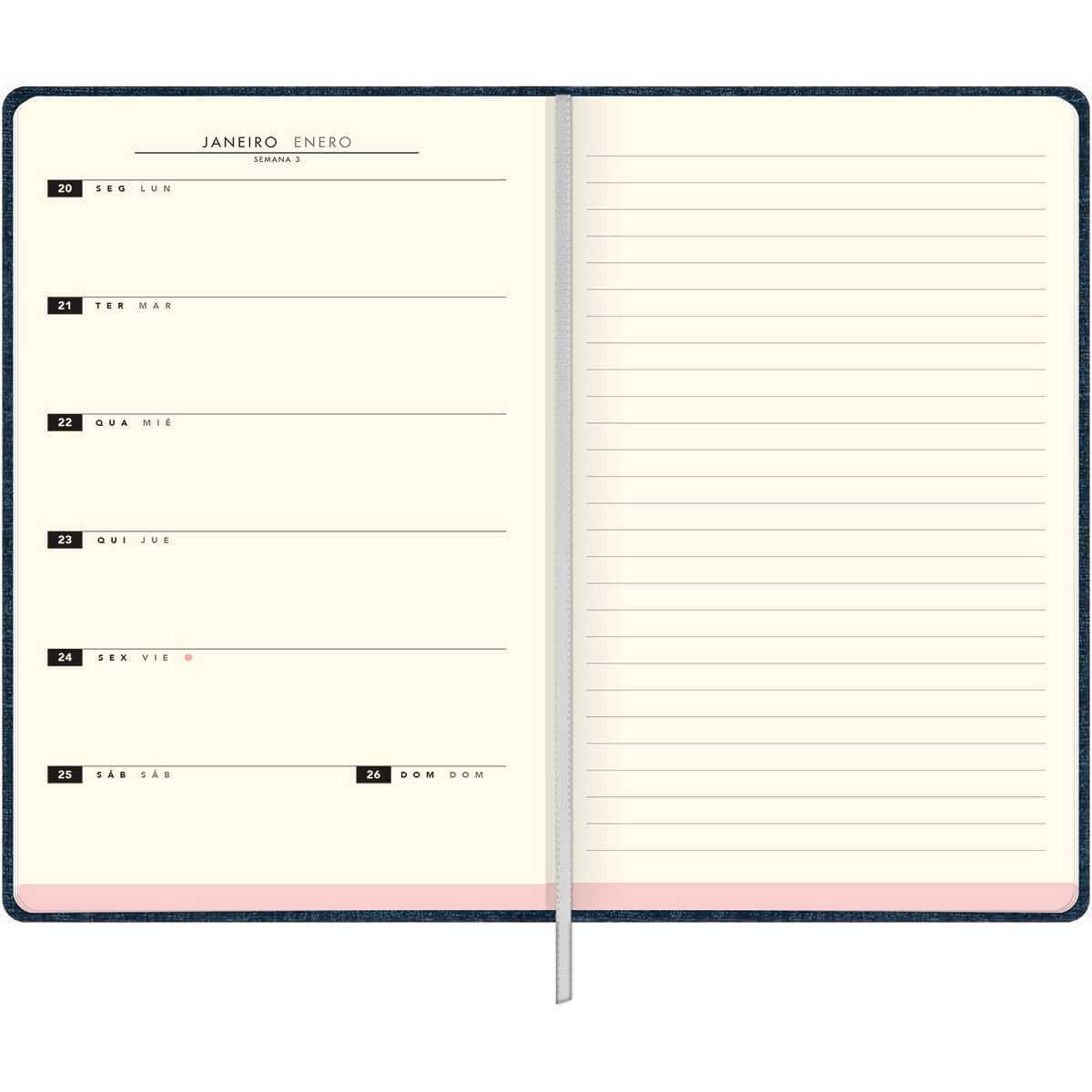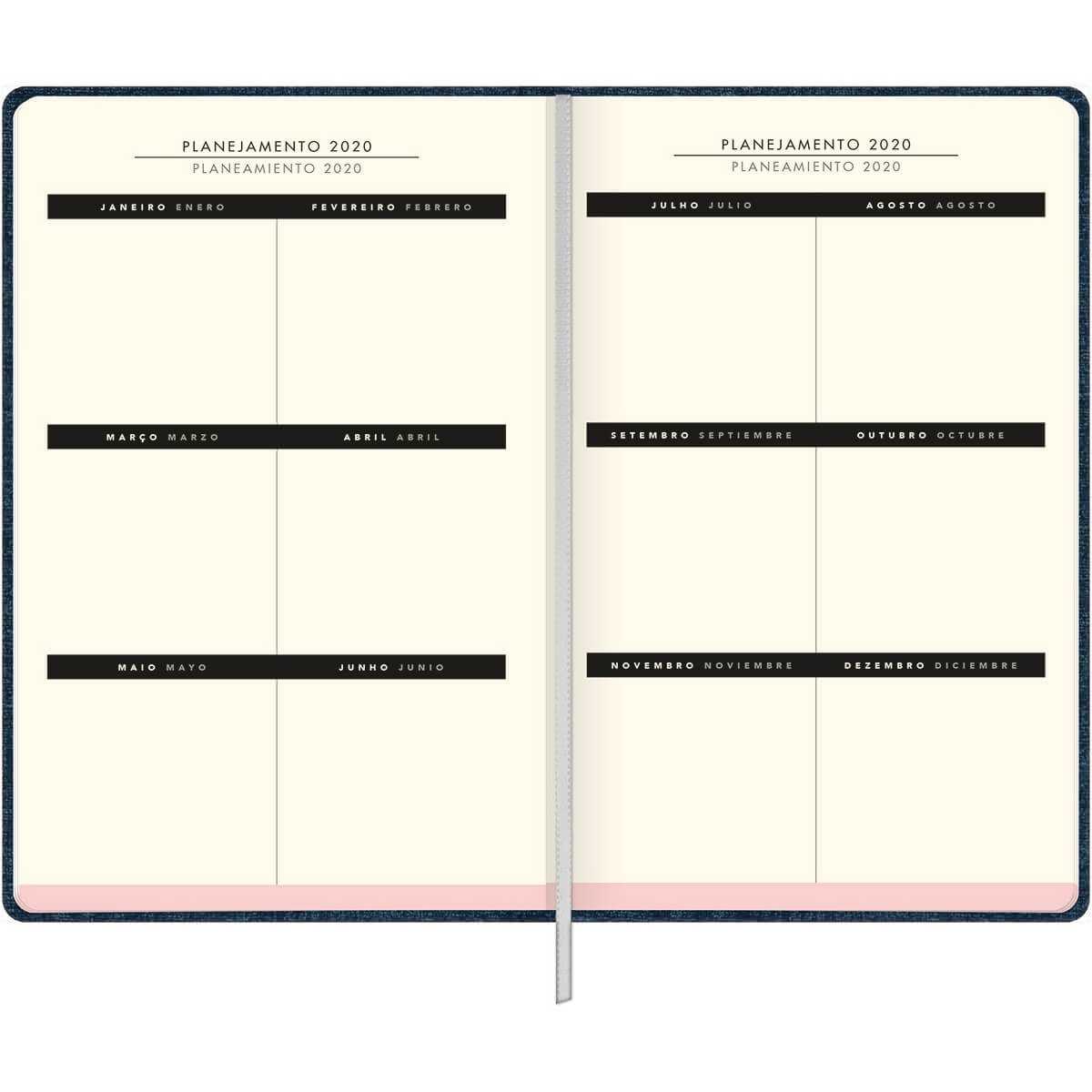O Planner Costurado Cambridge Denim 2021 possui visões semanal, mensal e anual, além de capa dura com material especial e detalhe metalizado, elástico, fitilho e folhas para anotações. Miolo com 80 folhas, formato 12,8cm x 20,8cm. Ideal para organizar os compromissos do dia a dia, em casa e no trabalho.
