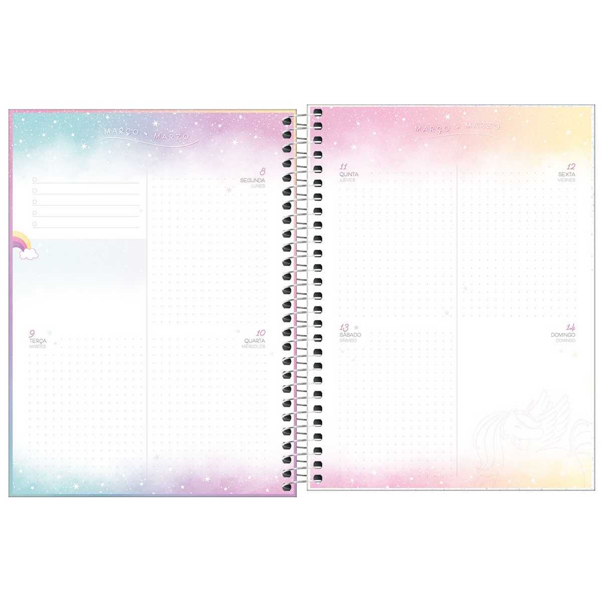 O Planner Espiral Blink 2021 tem 1 opção de capa, com visões anual, mensal e semanal, além de algumas folhas para anotações, capa dura com parte interna decorada, hot stamping holográfico e espiral branco. Miolo com 80 folhas, formato 17,7cm x 24cm. Vem com folha de adesivos, bolsa em papel para guardar documentos e fechamento em elástico. Este planner pode ser usado para organizar os compromissos do dia a dia, em casa, no trabalho e na escola.