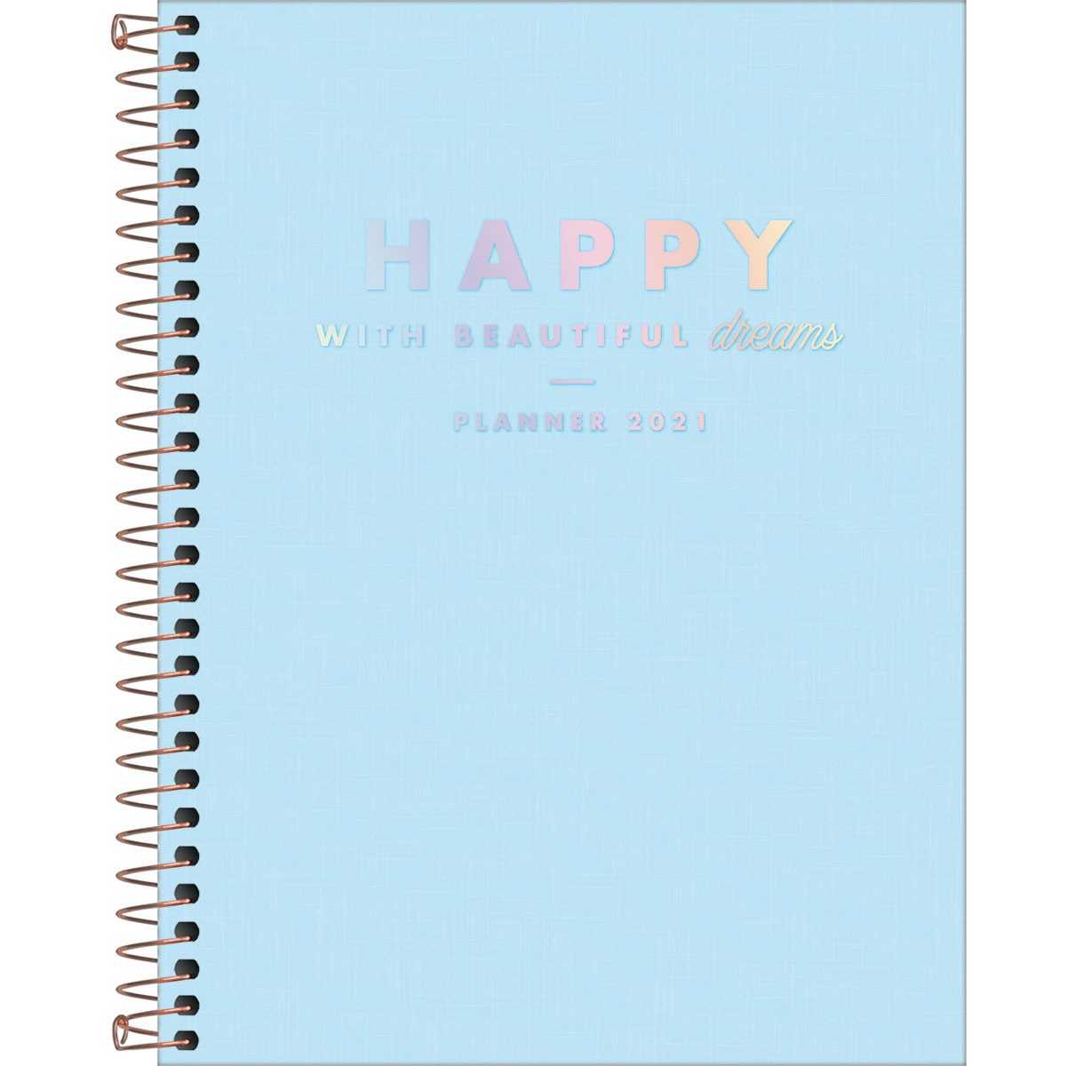 O Planner Espiral Happy Azul 2020 tem 1 opção de capa, com visões anual, mensal e semanal, além de algumas folhas para anotações, capa plástica, hot stamping e espiral dourado. Miolo com 80 folhas, formato 17,7cm x 24cm. Vem com folha de adesivos e bolsa em papel para guardar documentos. Este planner pode ser usado para organizar os compromissos do dia a dia, em casa, no trabalho e na escola.