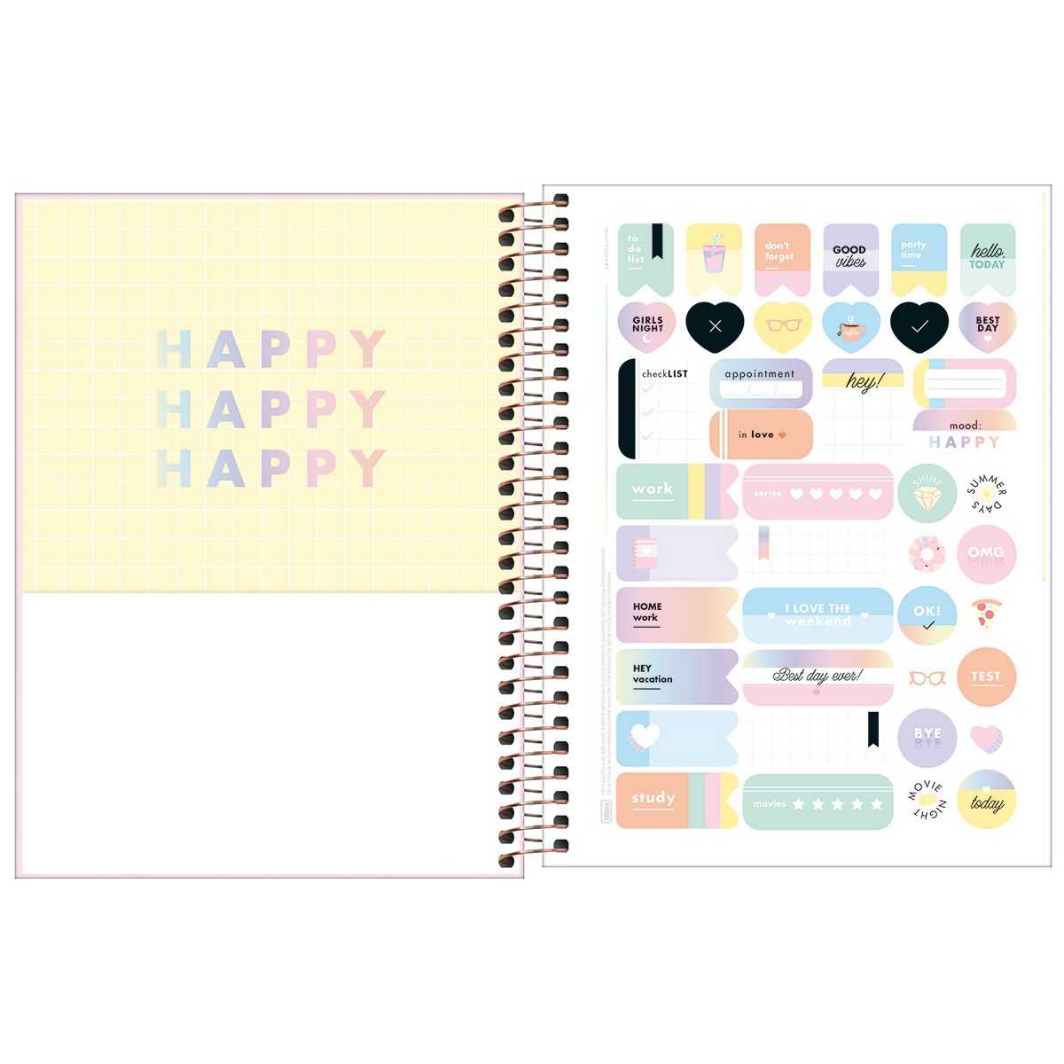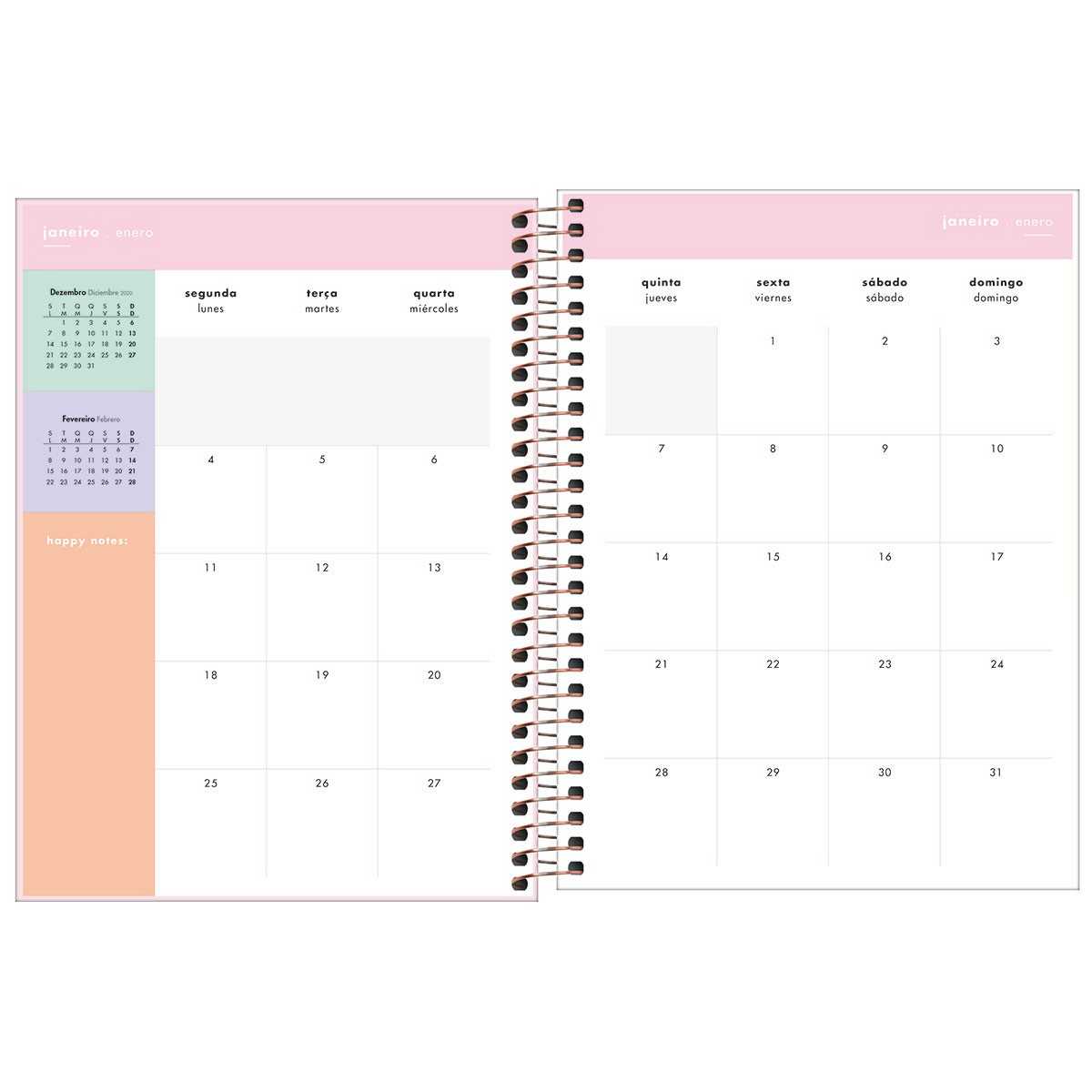 O Planner Espiral Happy Rosa 2020 tem 1 opção de capa, com visões anual, mensal e semanal, além de algumas folhas para anotações, capa plástica, hot stamping e espiral dourado. Miolo com 80 folhas, formato 17,7cm x 24cm. Vem com folha de adesivos e bolsa em papel para guardar documentos. Este planner pode ser usado para organizar os compromissos do dia a dia, em casa, no trabalho e na escola.
