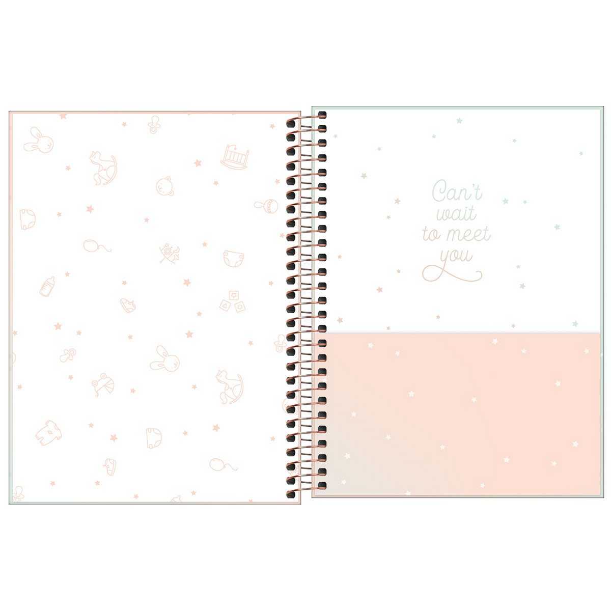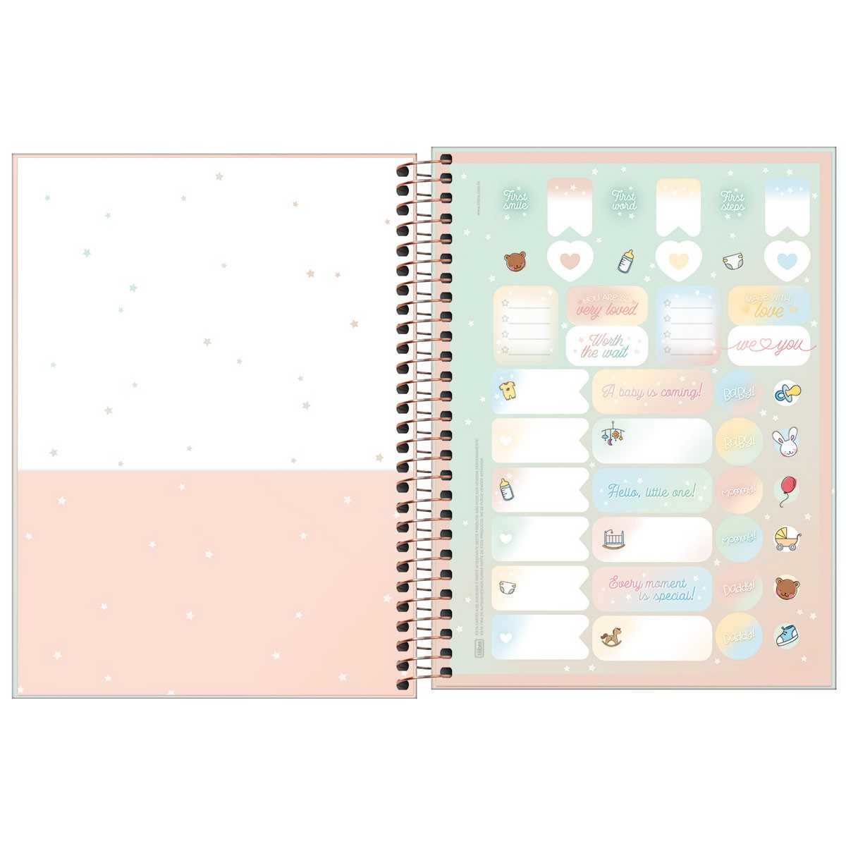 O Planner Espiral Mommy é ideal para auxiliar e registrar os melhores momentos da maternidade. Possui miolo com 80 folhas com visão permanente. No formato 17,7cm x 24cm, vem com folha de adesivos e bolsa em papel para guardar documentos.