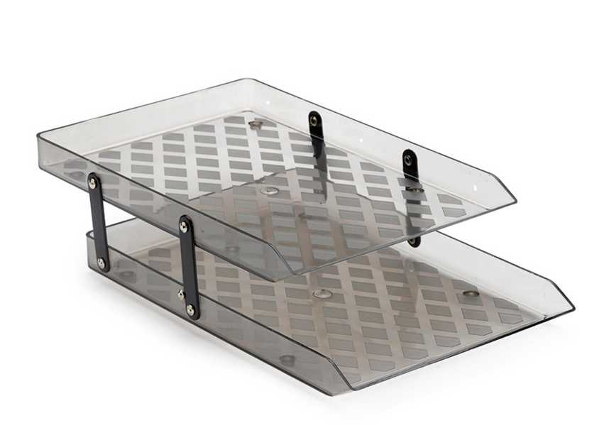 Caixa de correspondência dupla, articulada, na cor fumê, marca Waleu, fabricada em acrílico super resistente. Ideal para uso na organização de papéis em casa ou escritório.