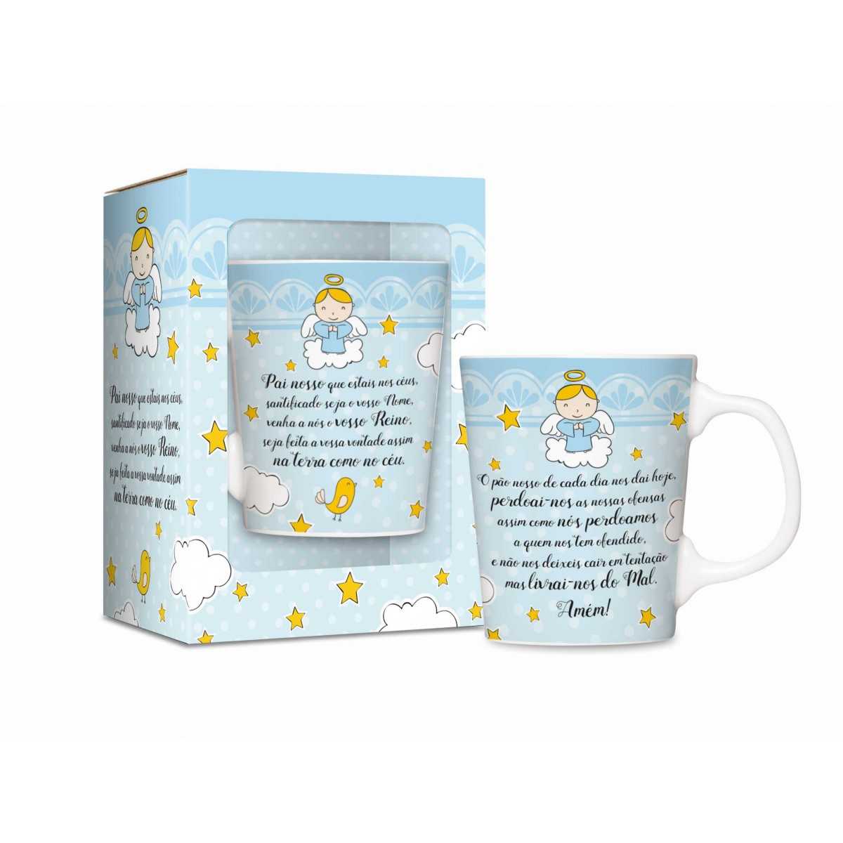 Escolha cultivar alegria e a paz para atrair só o que é bom. A CANECA PORCELANA PREMIUM PAI NOSSO AZUL é super charmosa e muito fofa.