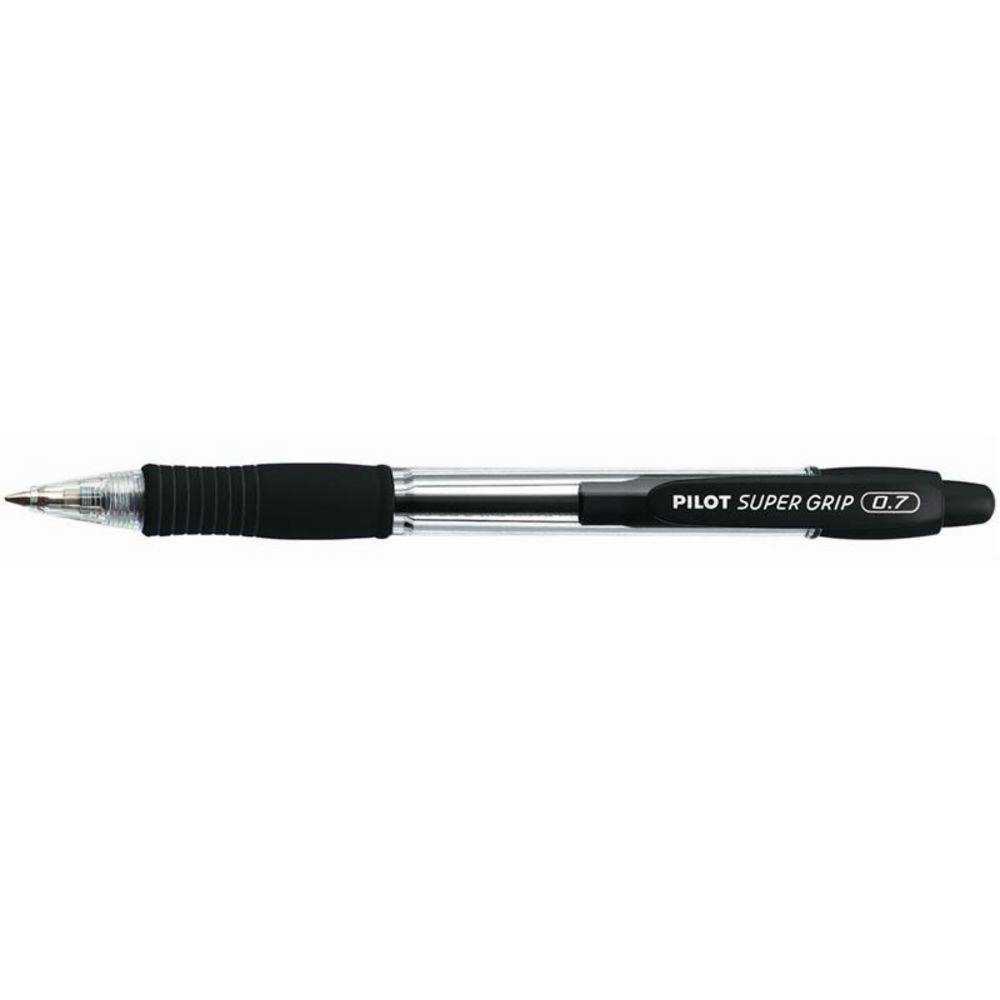 Caneta esferográfica Pilot Super Grip 0.7mm Retrátil, com corpo arredondado e grip em borracha anatômica.