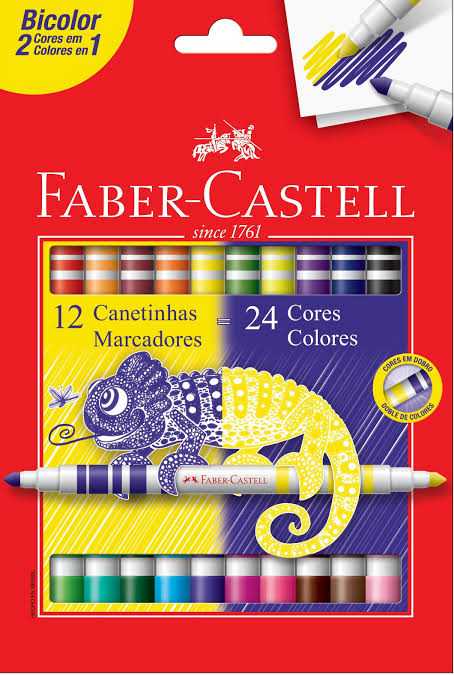 Caneta hidrográfica bicolor 12=24 cores Faber Castell.