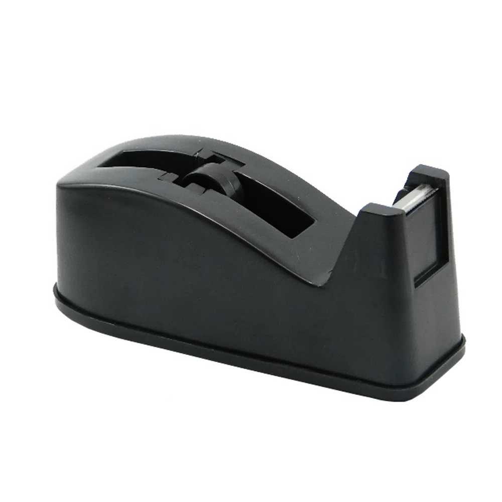 Suporte utilizado para o manuseio de fitas adesivas de 180 mm x 80 mm x 70 mm, com o sistema de roldana e serrilha de aço inoxidável. Disponível na cor preta.