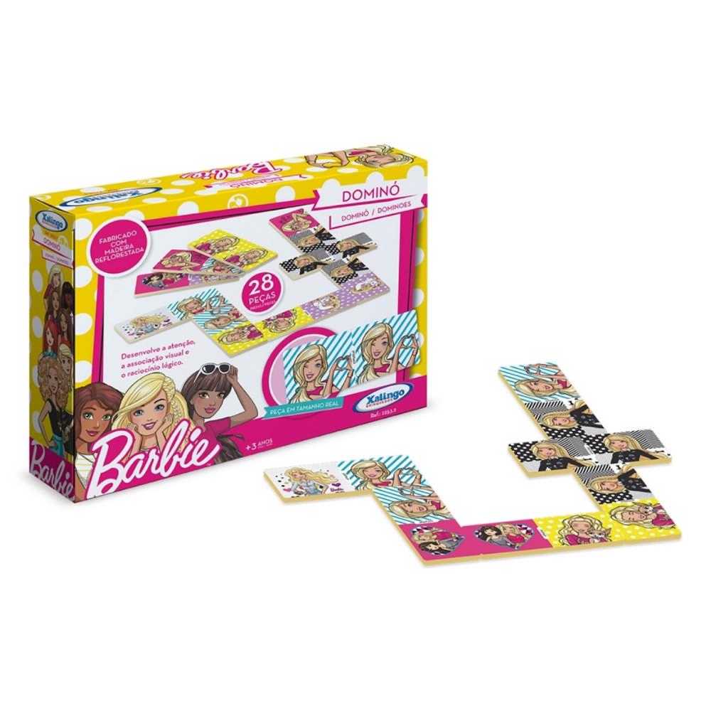 O jogo de Dominó Barbie trabalha as diferenças entre os personagens, possibilitando aos pequenos o desenvolvimento lógico, a atenção, a percepção visual e a socialização, uma vez que o jogo é em grupo. Proporciona momentos de descontração e lazer entre família e amigos. Contém 28 peças em madeira reflorestada. Recomendado para crianças a partir dos 3 anos de idade.