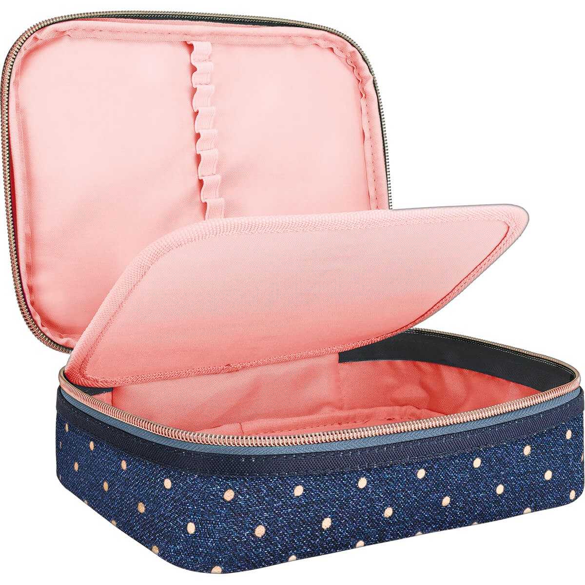 O Estojo Box Académie Poá é prático, espaçoso e ideal para quem possui muitos lápis, canetas e outros materiais e acessórios. Além de facilitar seu dia a dia na escola, esse estojo possui material resistente, é estruturado, espaçoso e possui divisória central com elásticos que auxiliam na organização do material. Possui fechamento em zíper.