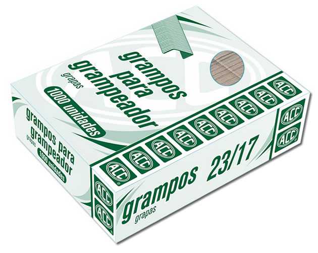 CAPACIDADE DE GRAMPEAR 110 ATÉ 140 FOLHAS DE 75 G Os grampos da linha 23, são indicados para escritórios e gráficas