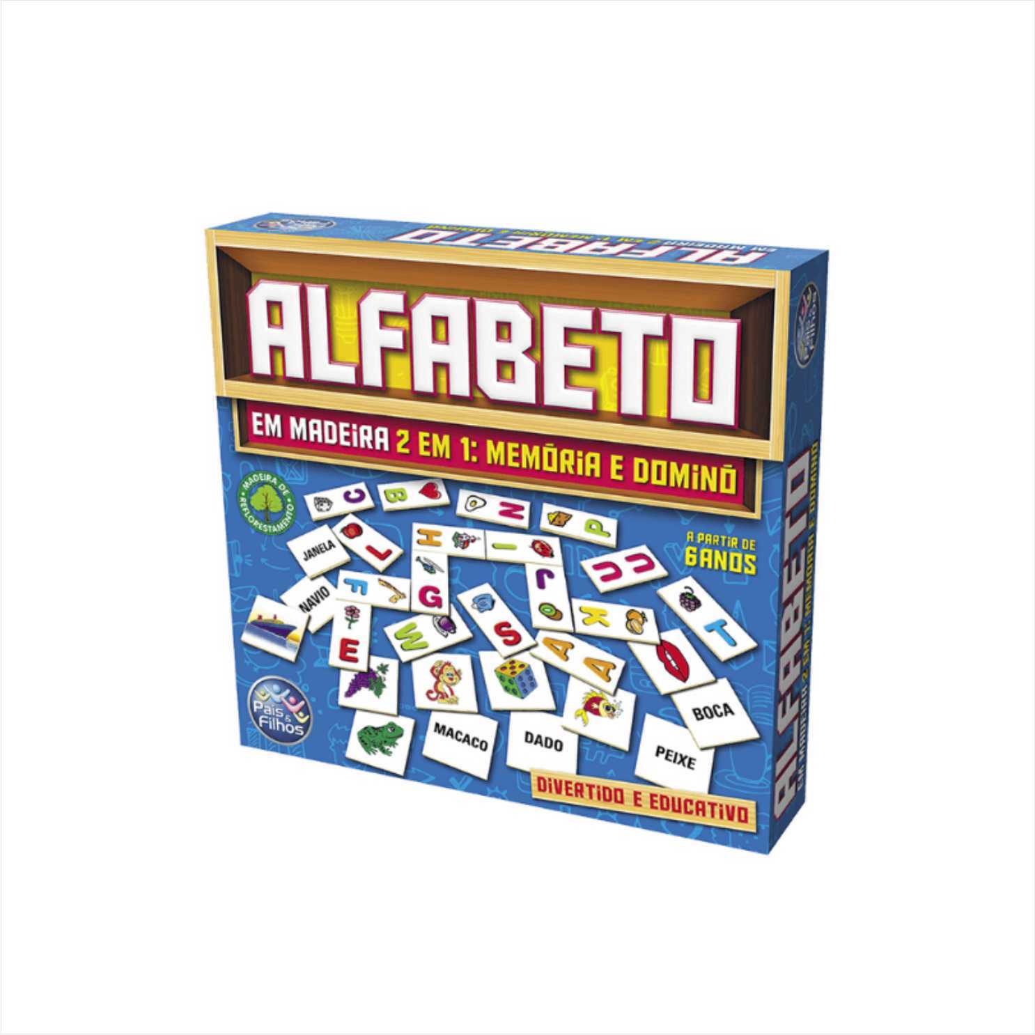 Jogo Alfabeto 2 em 1: Memória e Dominó em Madeira da Pais & Filhos É Ideal Para Crianças Acima de 6 Anos.