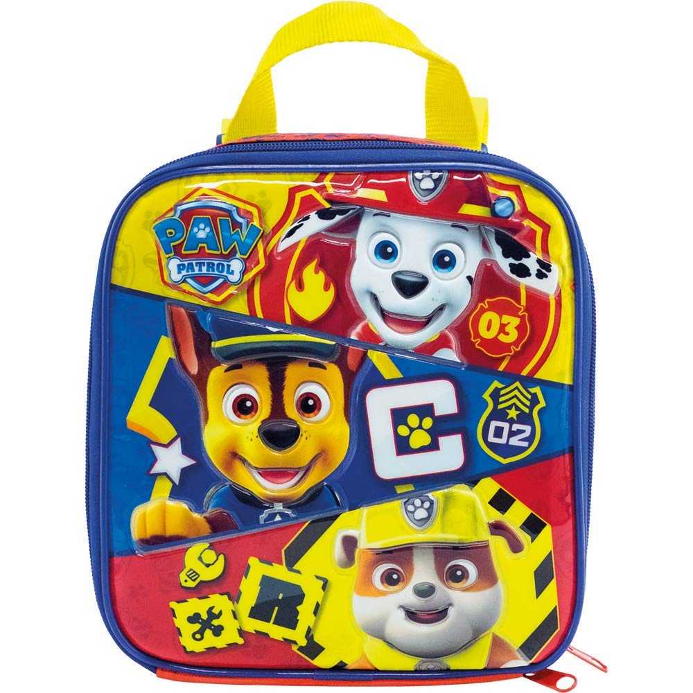 Paw Patrol e sua linha Mates. Sua lancheira é produzida com nylon resistente e fácil de limpar. Seu interior é revestido com tecido que ajuda a manter o frescor dos alimentos por mais tempo. Possui alça ajustável e suporte para encaixe na haste do carrinho das malas de rodinha. Seu painel frontal é em PVC cristal e tem a estampa da Patrulha Canina. Possui certificação Inmetro.