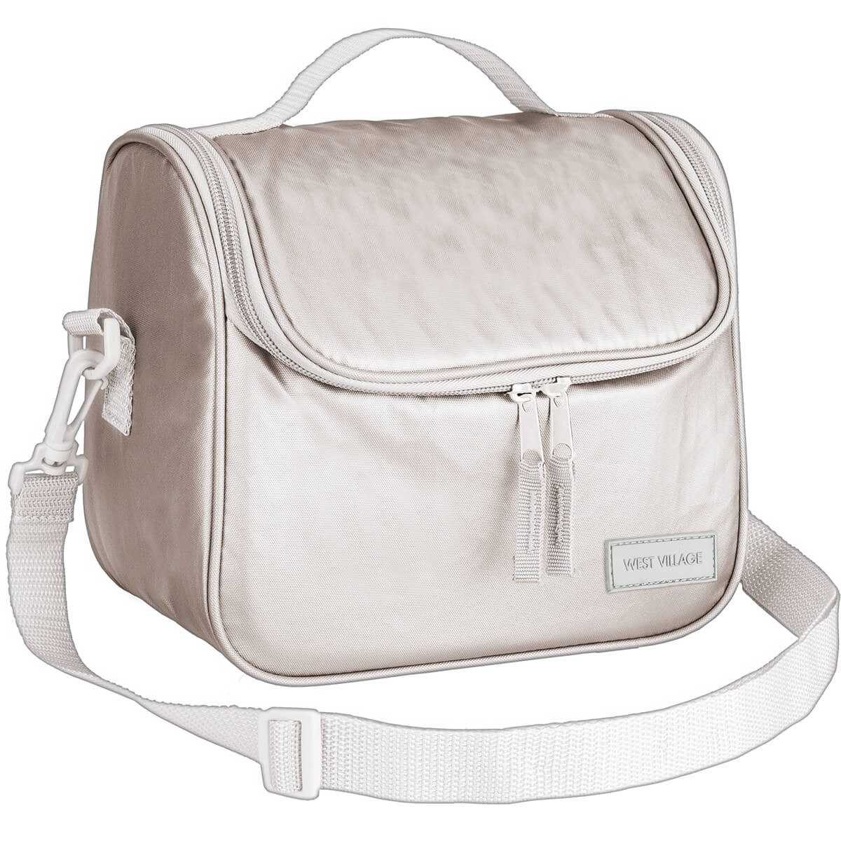 A Lancheira Tiracolo West Village Metalizada Prata é resistente e possui material interno que ajuda a conservar a temperatura dos alimentos, além de ser de fácil limpeza. Possui alça removível.