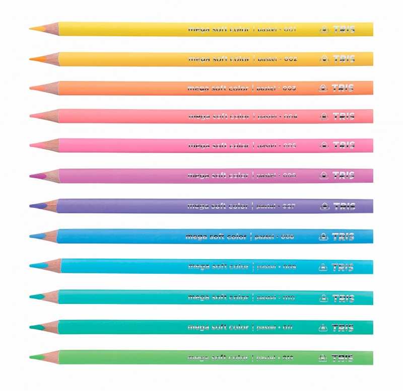 Lápis De Cor Mega Soft Color Tons Pastel – Tris Cores pasteis; Traço super macio; Corpo triangular.