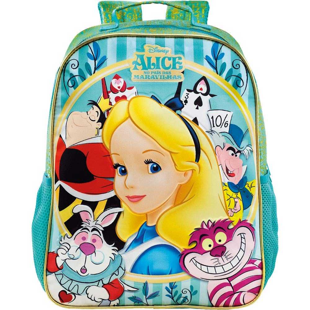 A linha Secret Garden de Alice trás toda a magia da personagem. Sua mochila é tamanho 14″ com um compartimento bastante espaçoso para armazenar todos os objetos que as crianças queiram transportar. Seu painel frontal é produzido em cetim estampado e relavo 3D e suas lateriais possuem estampa dourada. Possui 2 bolsos laterais em mesh e elástico e vivos dourados.