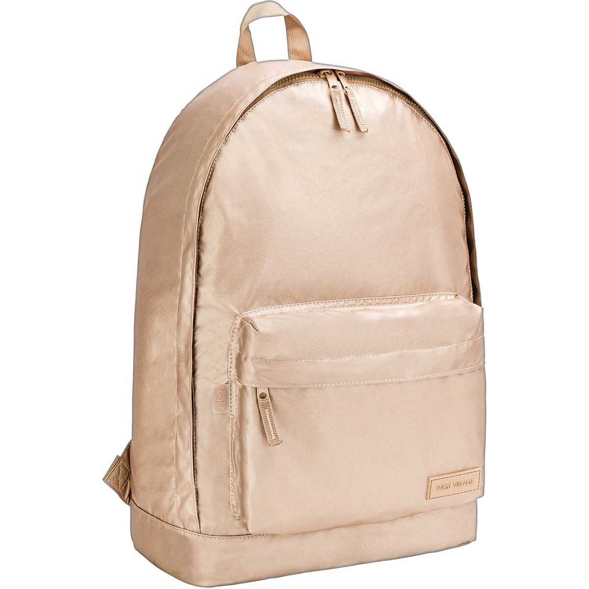 A Mochila de Costas West Village Metalizada Dourado é confeccionada em material resistente, com base reforçada, parte interna forrada e alças acolchoadas e ajustáveis para garantir conforto a quem utilizá-la. Possui dois compartimentos, sendo um bolso externo e uma abertura principal, com divisória interna, para armazenamento de materiais do dia a dia.