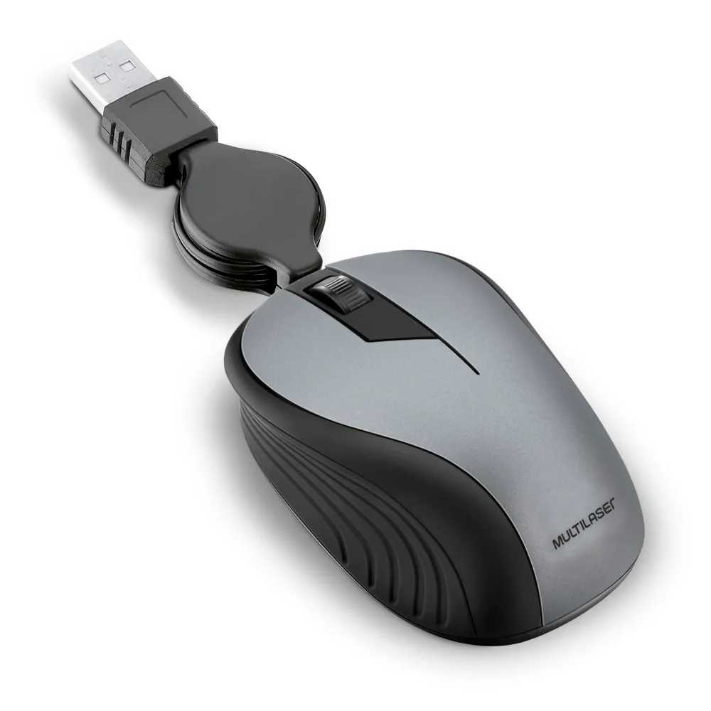 MOUSE OPTICO RETRATIL USB WAVE 1200DPI CINZA EMBORRACHADO MULTILASER