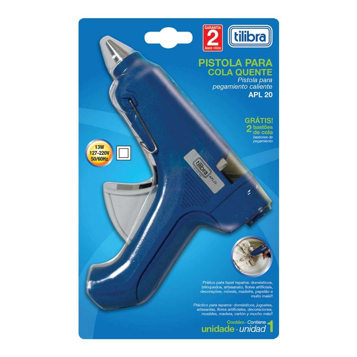 A Pistola para Cola Quente Média APL20 é prática de se usar, facilitando a aplicação da cola Hot Melt em tecidos, madeira, plástico, entre outros materiais. Perfeita para uso artesanal e trabalhos escolares.